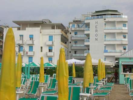 Ansicht des Hotel Heron vom Strand Lido di Jesolo aus gesehen.