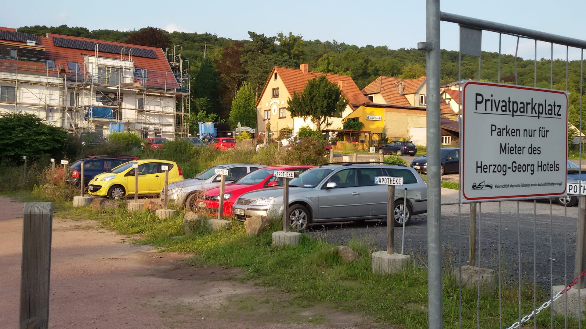 der Parkplatz mit für diverse andere Nutzer reservierten Plätzen