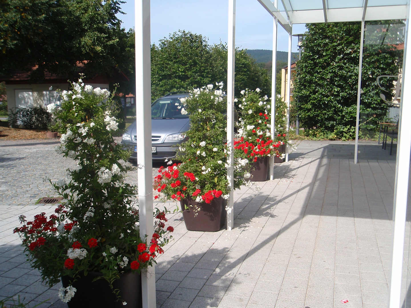 Hotel von aussen - Arkarden vom Parkplatz zum Hotel