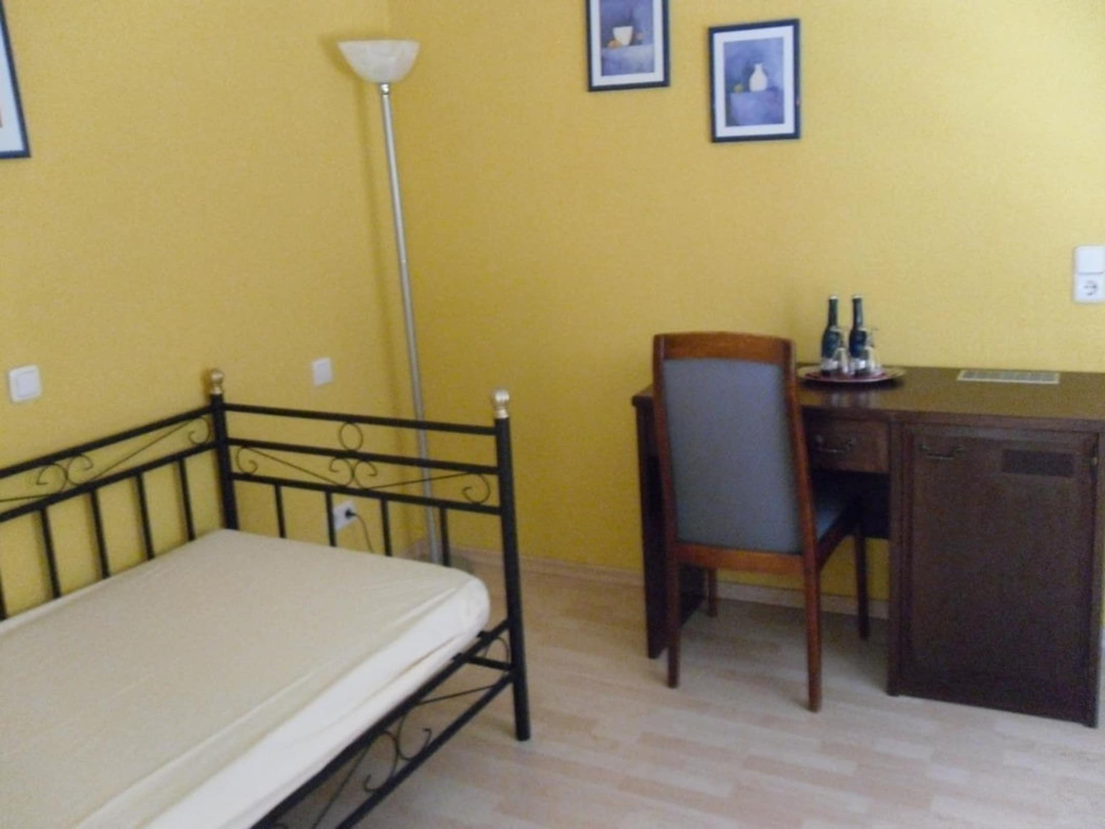 Einzelbett und Schreibtisch im 1. Raum