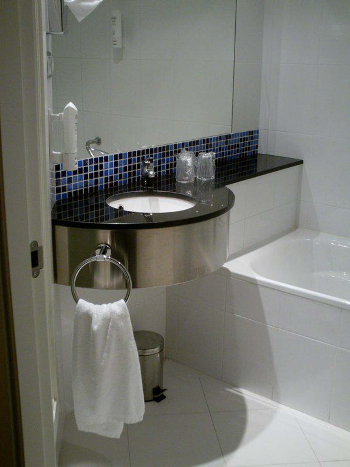 Grande salle de bain avec petites mozaïque bleues!