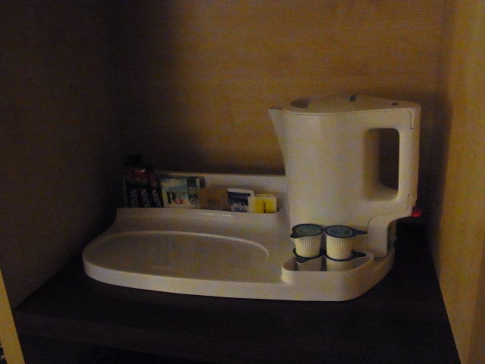 Wasserkocher mit Tee und Kaffee Auf jedem Zimmer befindet sich ein Wasserkocher mit Tee und Kaffee kostenfrei.
