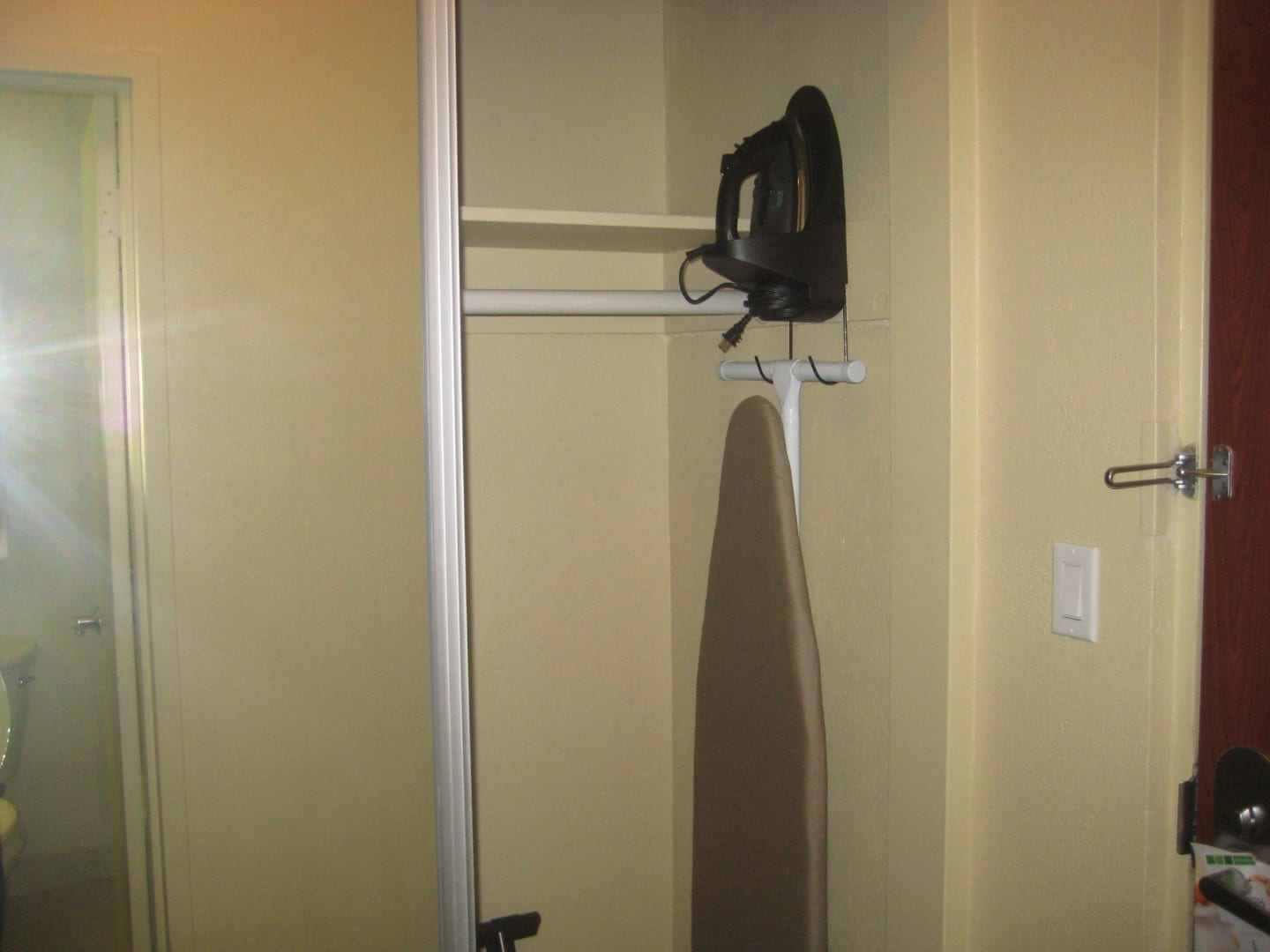 Bügelbrett und Bügeleisen im Kleiderschrank