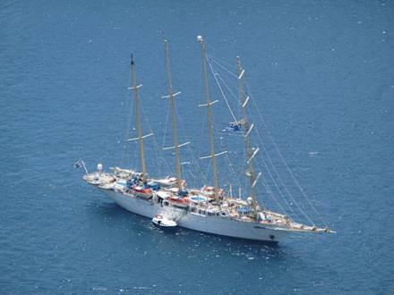 Ships seen from Homeric PoemsEveryday wonderful ships arrive at the caldera and can be seen from all terraces of Homeric Poems.