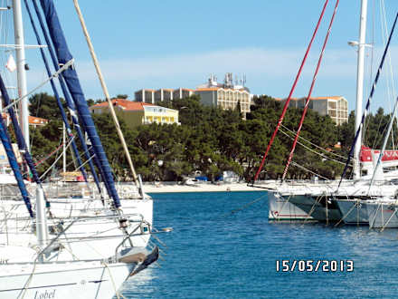 Blick vom Hafen auf das Hotel