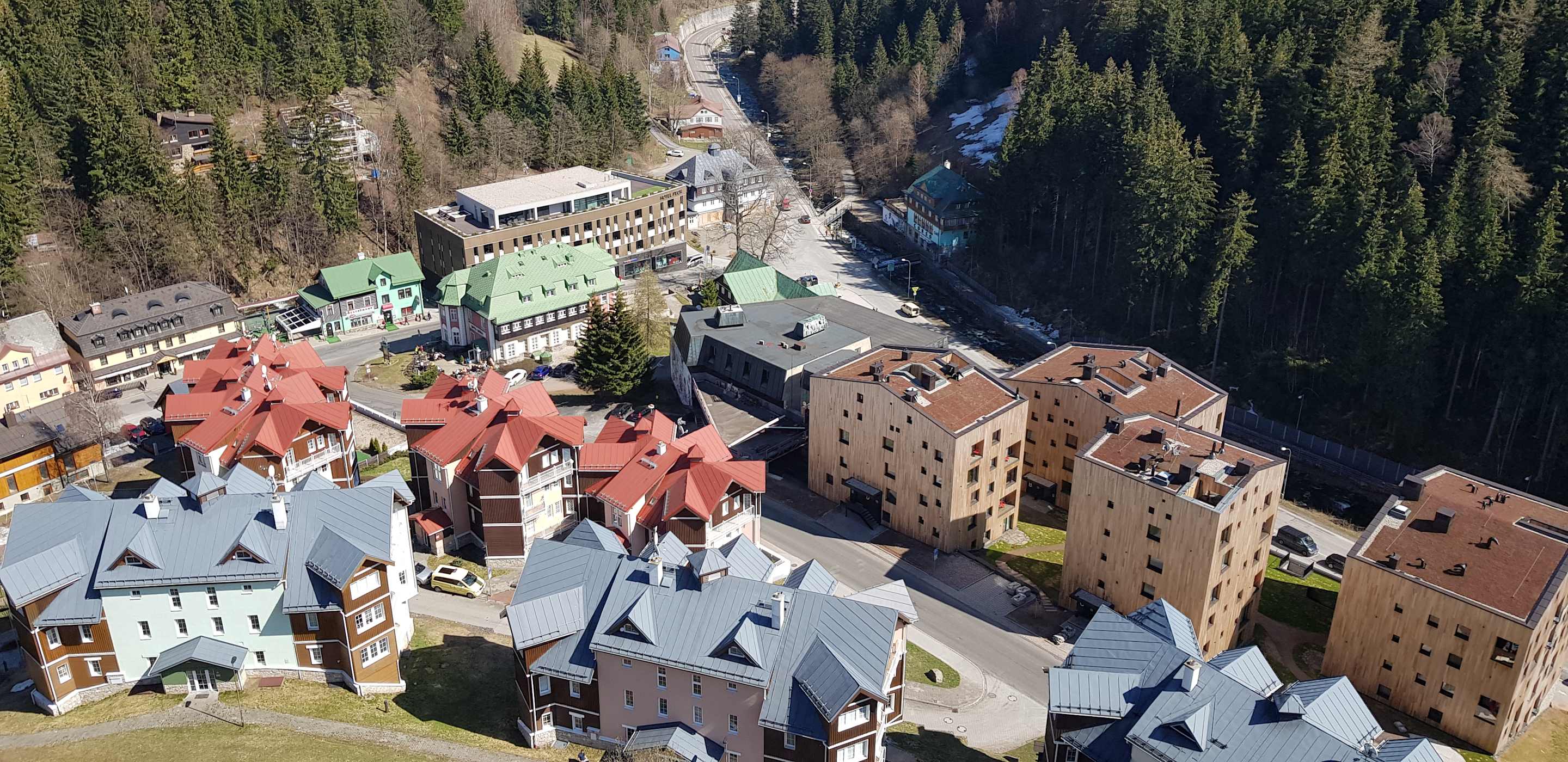 Ausblick aus unserem Zimmer in der 17. Etage auf das kleine Ortszentrum