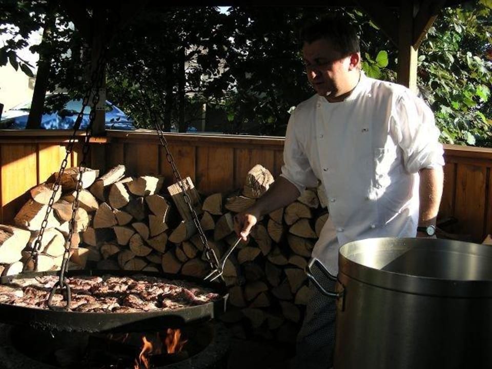 Herr Hosser beim Grillen des Idar-Obersteiner-Schwenkbratens.