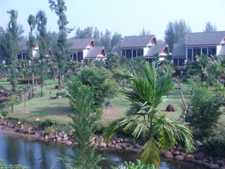 Das ganze Hotel insegsamt der schön bepflanzt und durch die Anlage fließt ein Bach/Fluß.
