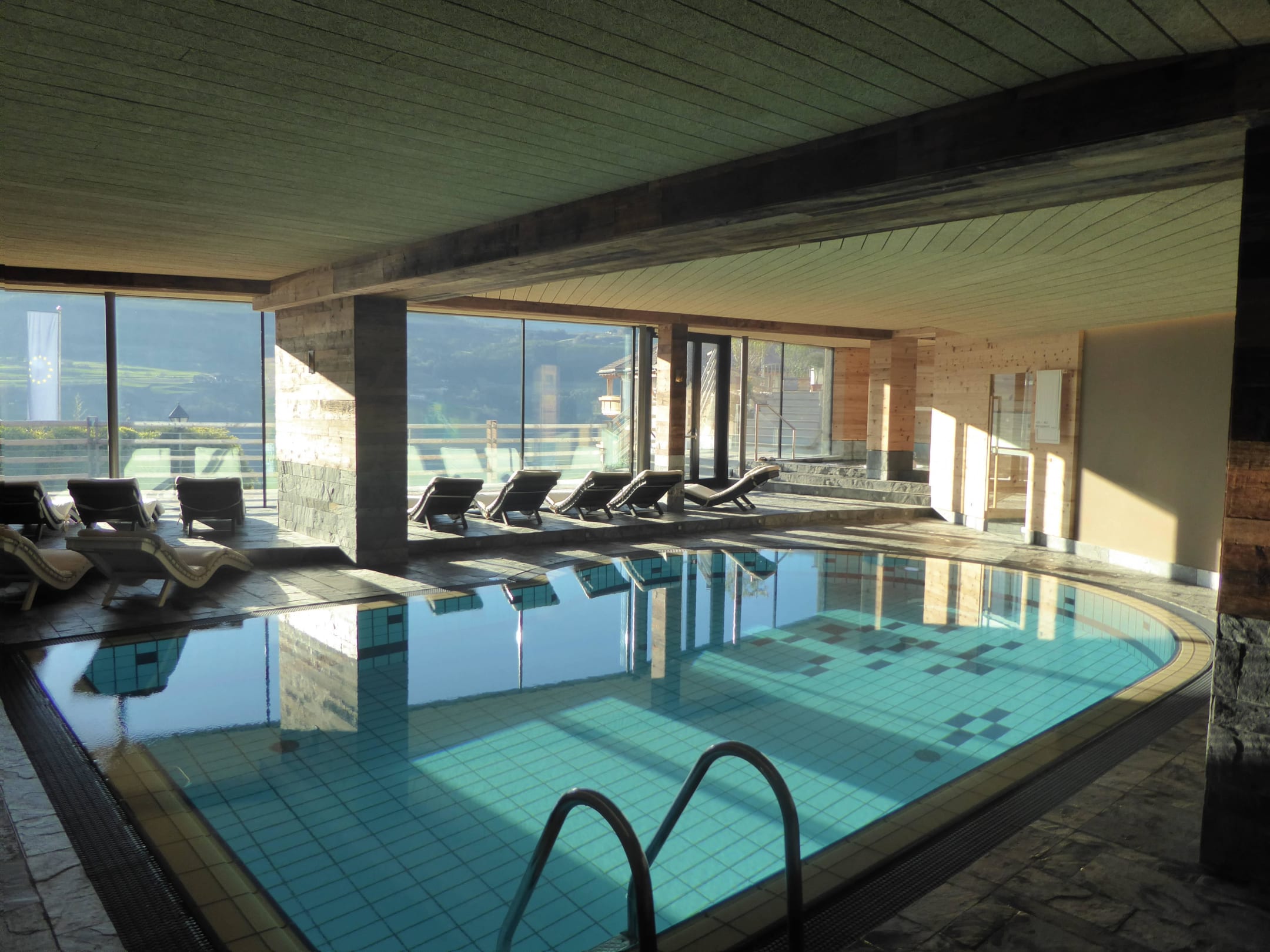 Der Pool mit Außensicht im Hotel Hubertus