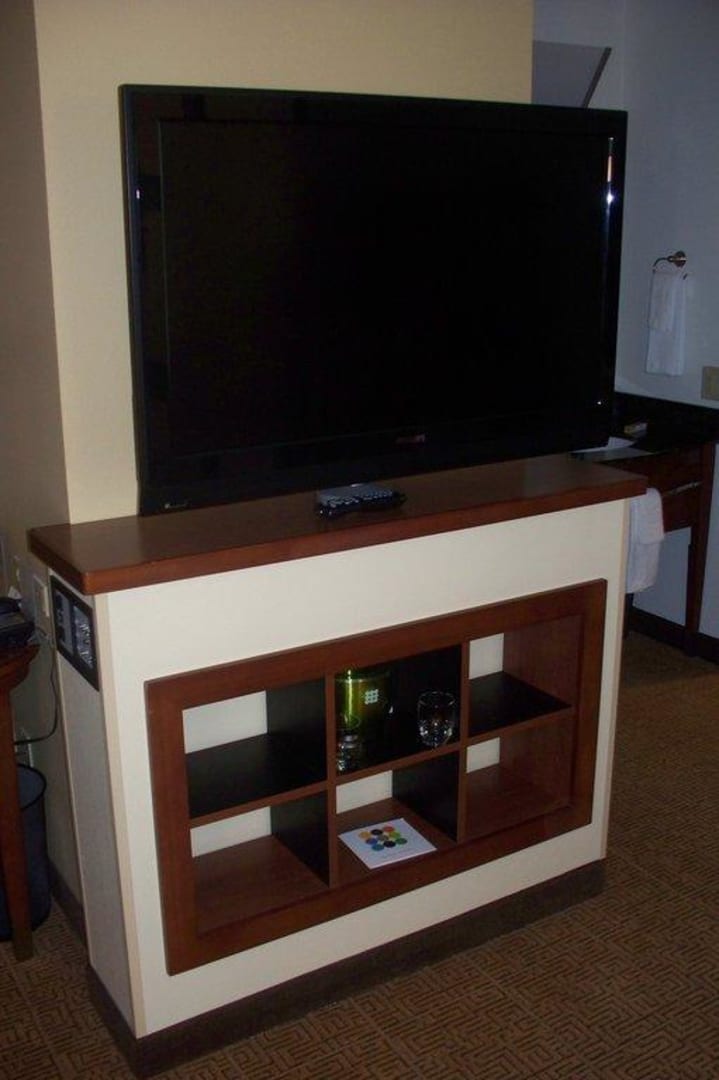 Der Fernseher in der Mitte der beiden Bereiche