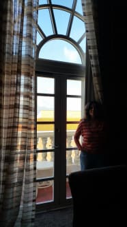 Standing by the balcony window