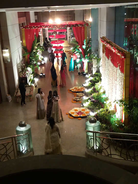 Dekoration für eine Hochzeitsfeier im Hyatt Regency Kolkata.