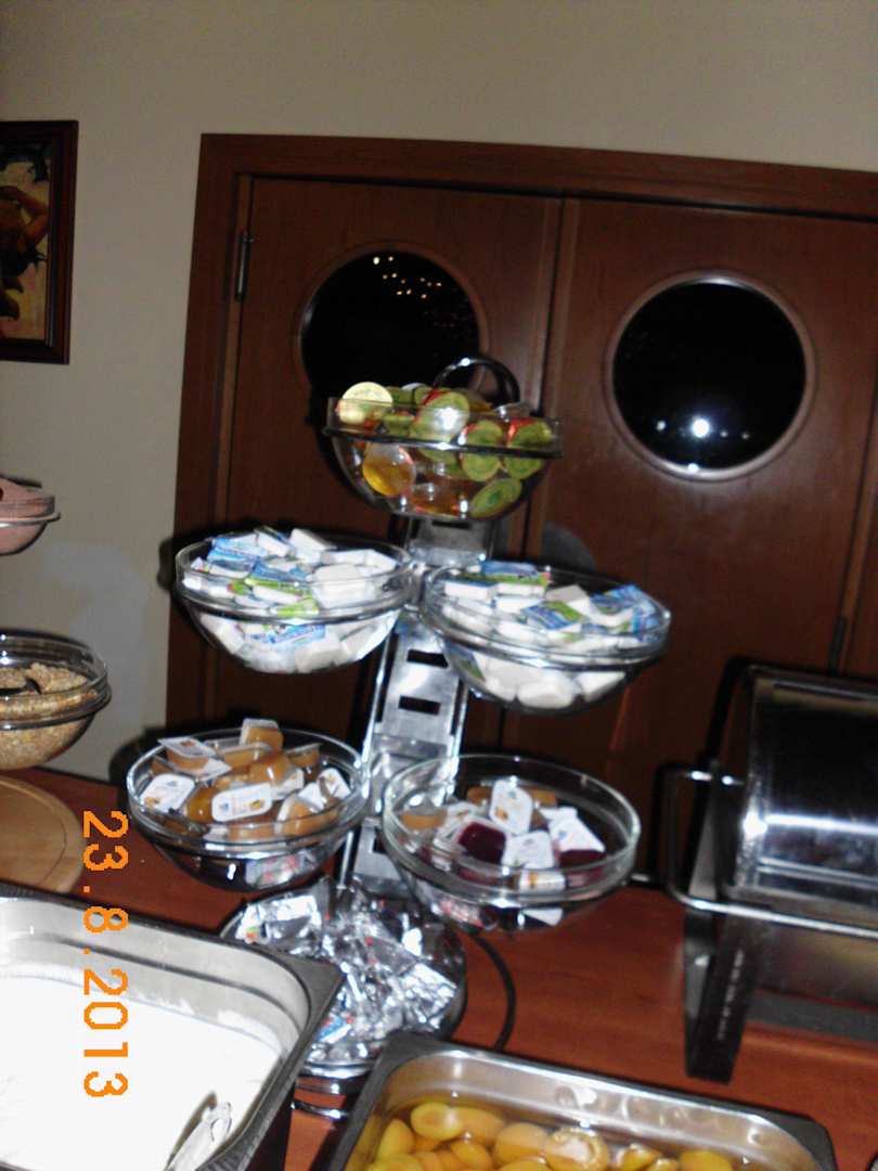 Butter, Marmelade, Honig, süßen Quark und Früchte