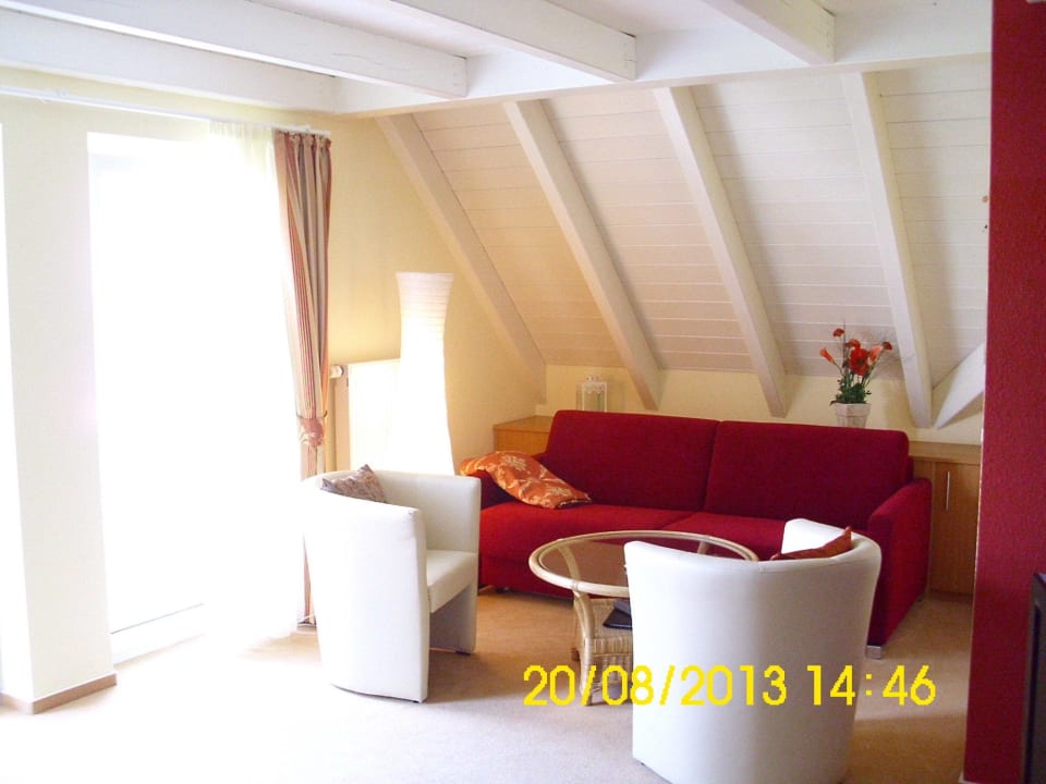 unser schönes Zimmer mit Blick auf die Sitzgruppe und die Coach