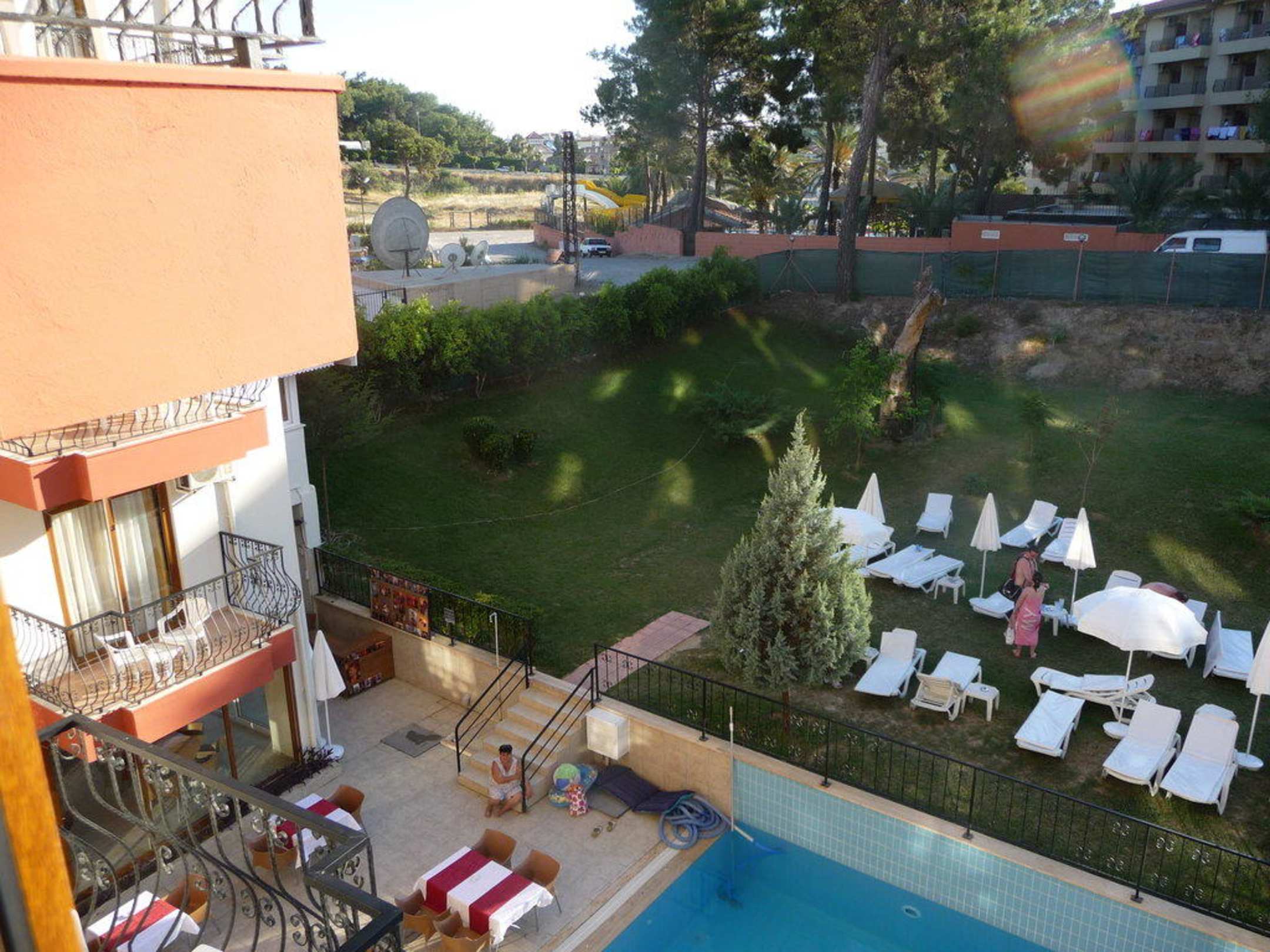 vom winzigen balkon heraus zum pool