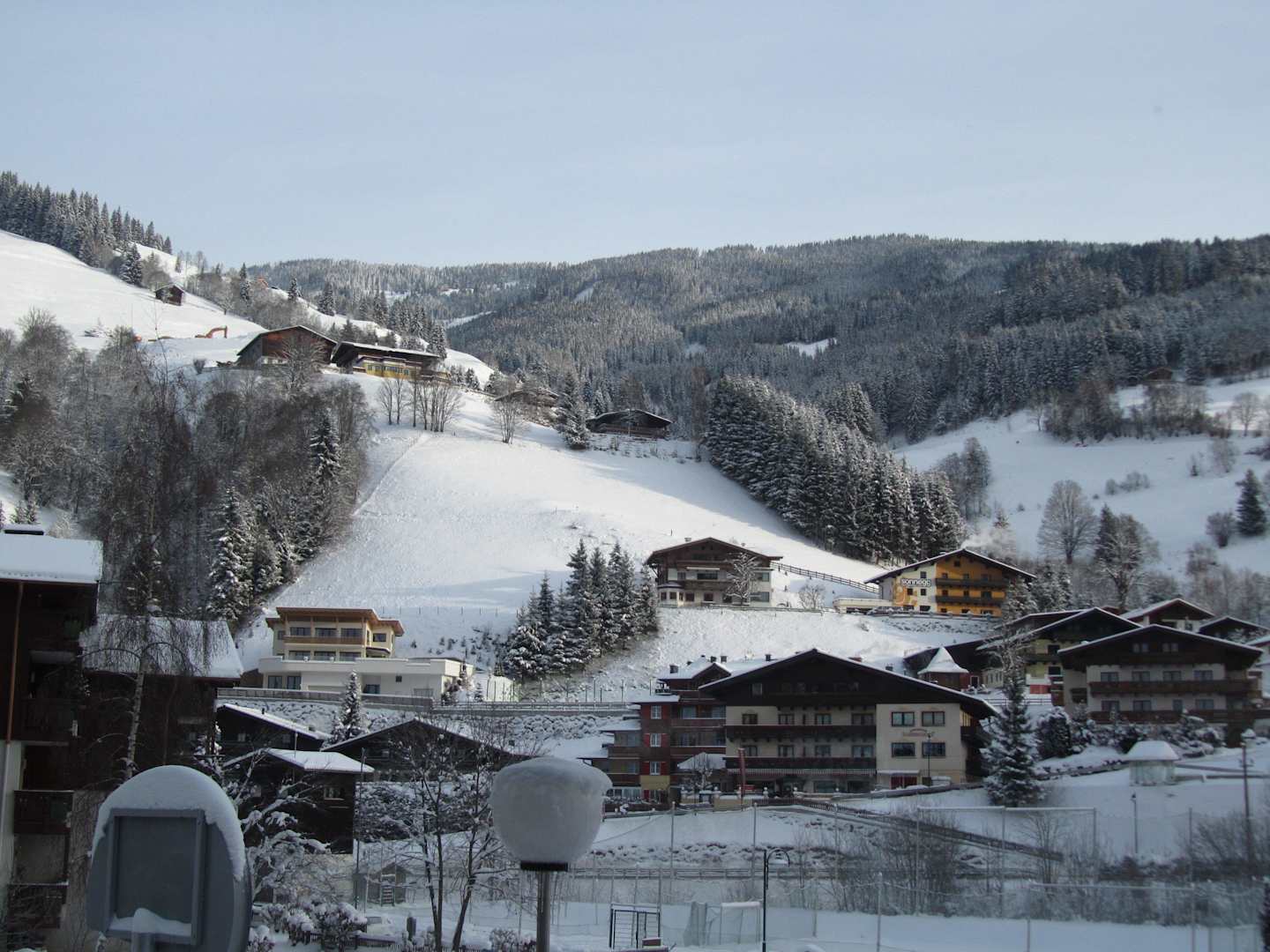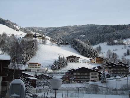 Vor dem Hotel auf die Piste endet am Hotel