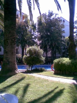 Sehr schöne Poollandschaft unter Palmen und Pinien!