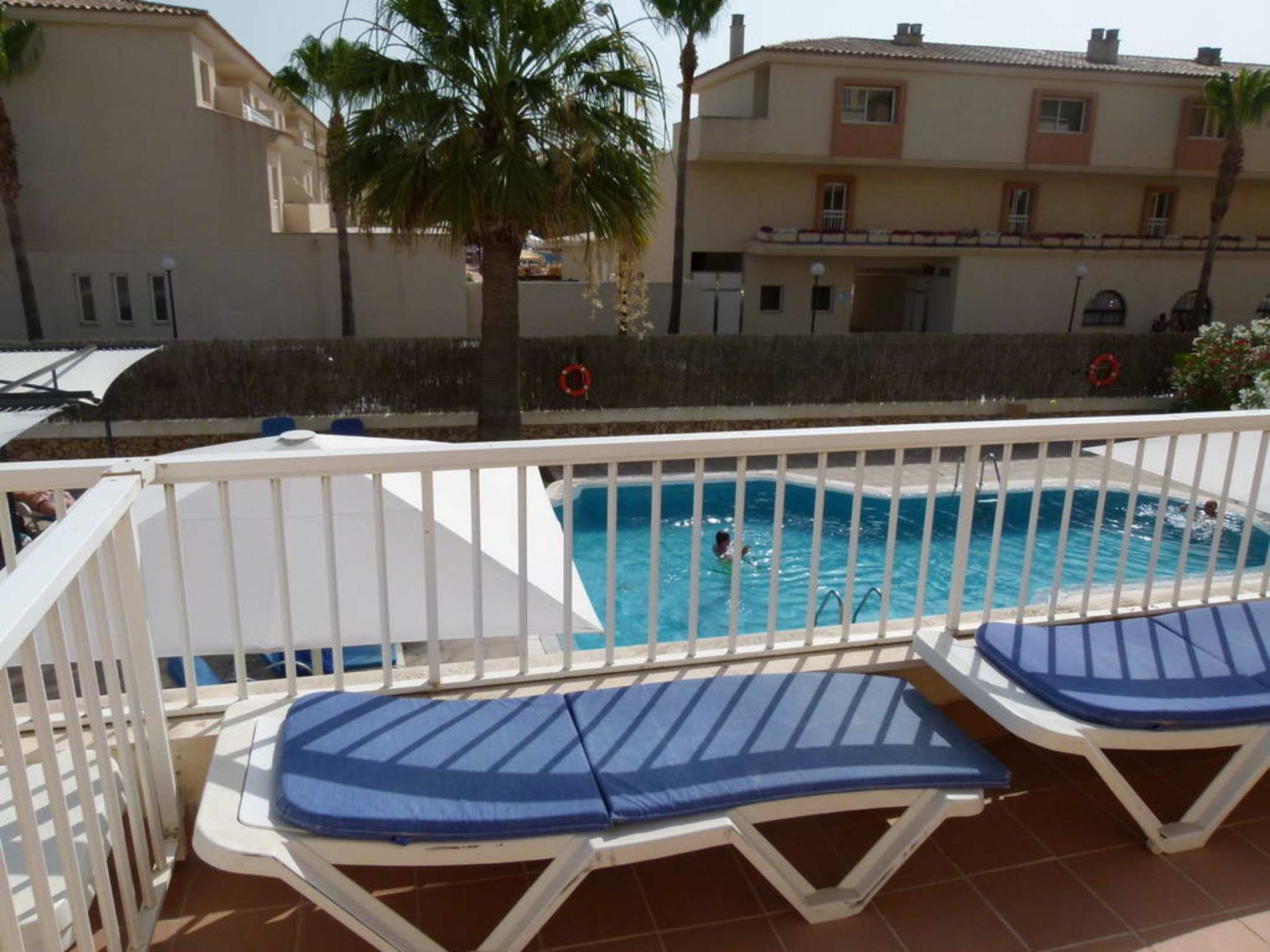 Blick von Zimmer terasse zum gegenüberliegendem Apparthotel Isla de Cabrera