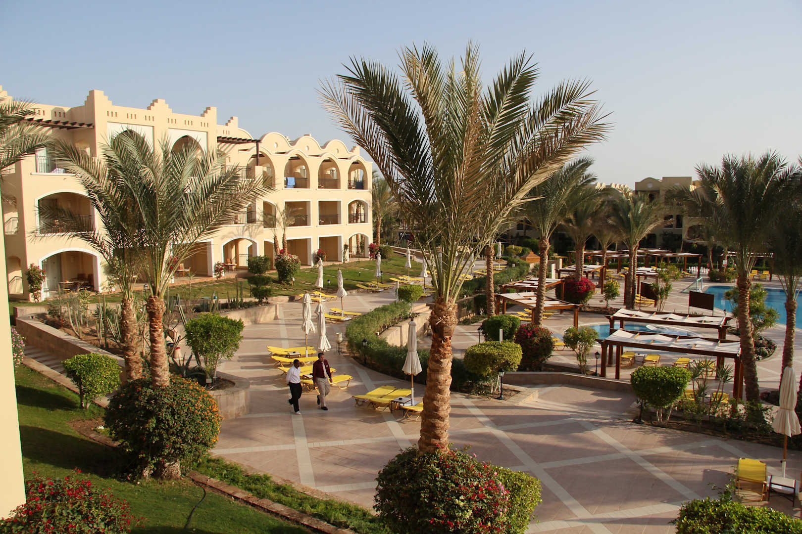 Ansicht vom Pool zu den Zimmern mit Poolblick
