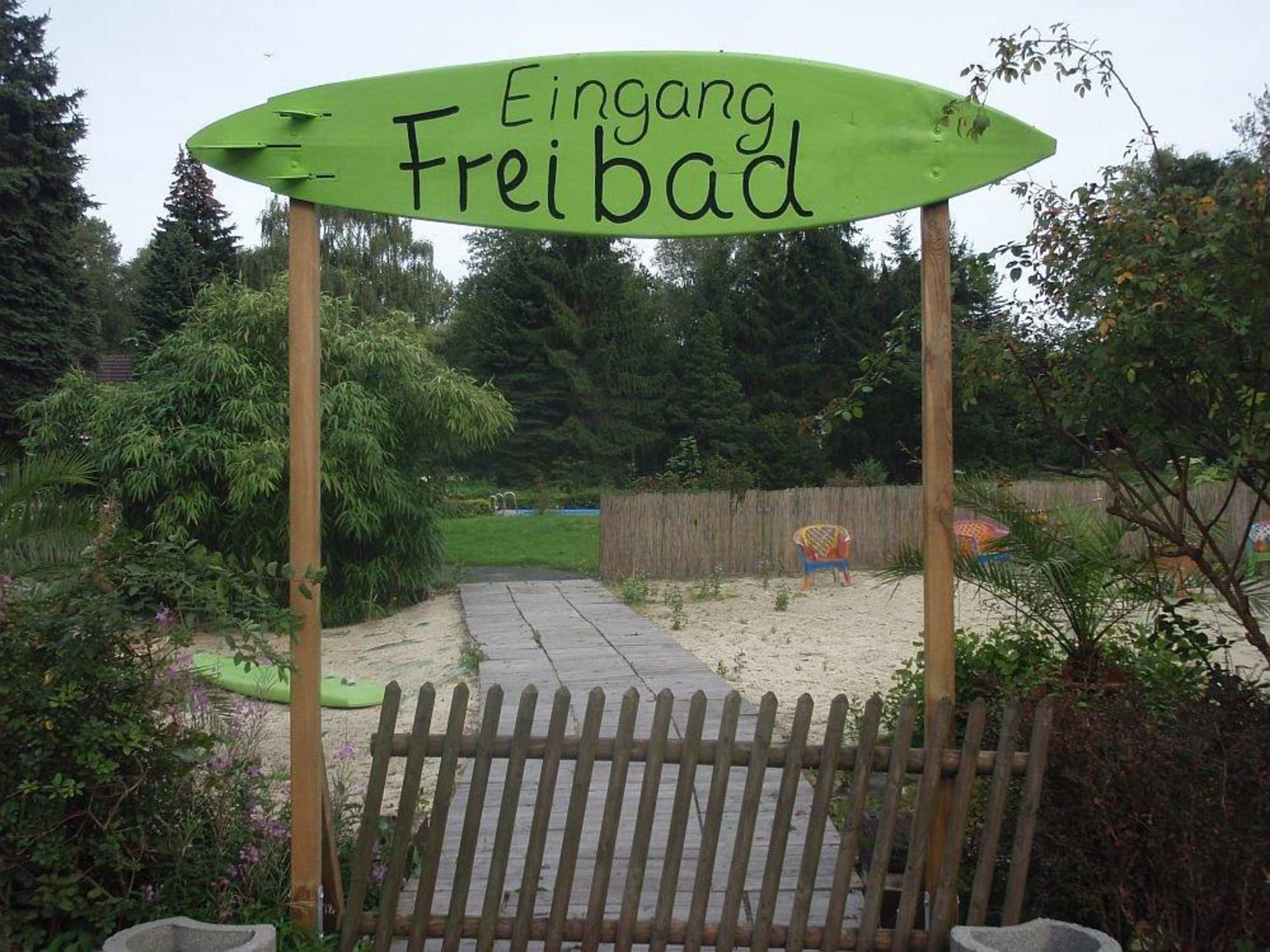 Eingang zu Pool und Liegewiese