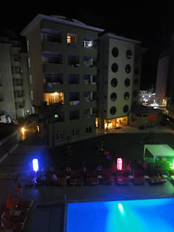 Pohled na křídlo hotelu v noci