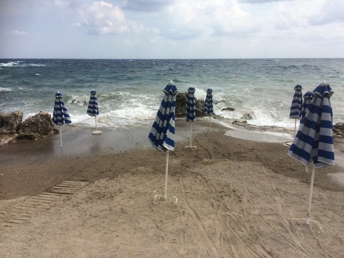 Abgeräumte Liegen nach heftigem Wind am 27.9.2018