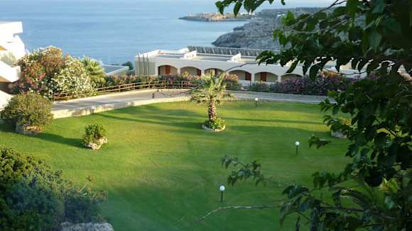 Blick aus dem Restaurant Hotel Kalithea Mare Palace
