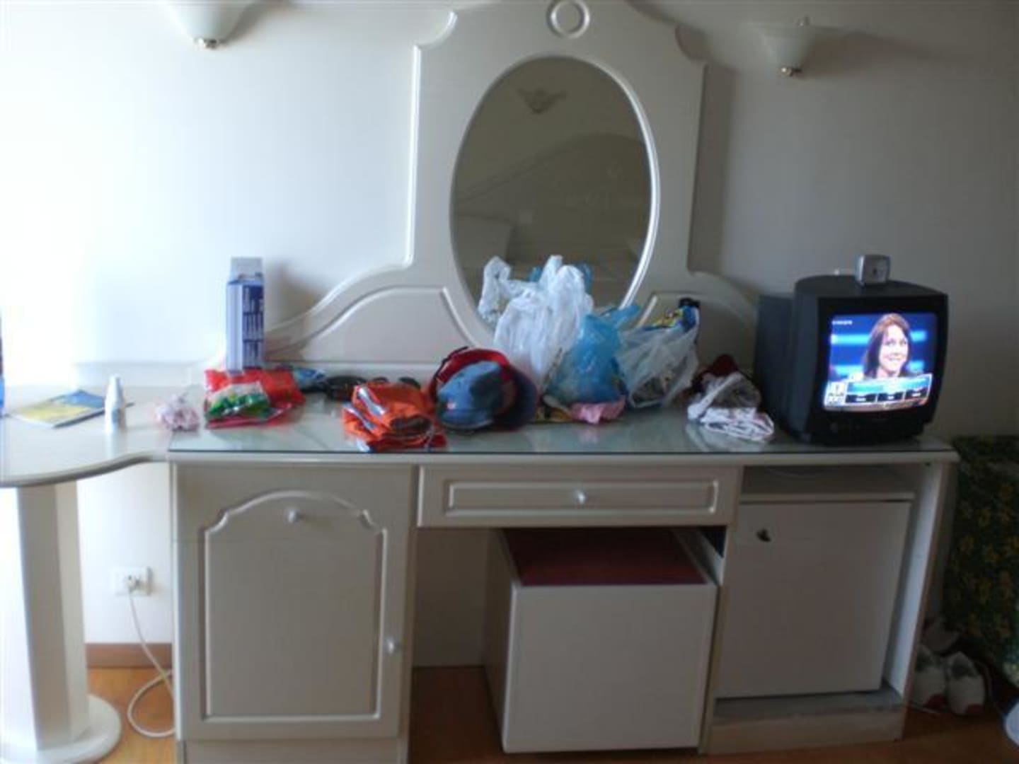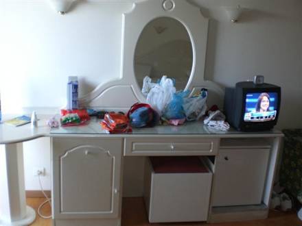 Diese Komode mit Spiegel war neben dem offenem Regal die einzige Möglichkiet seine Kleidung zu verstauen. Der offizielle Kleiderschrank hatte keine Fächer.