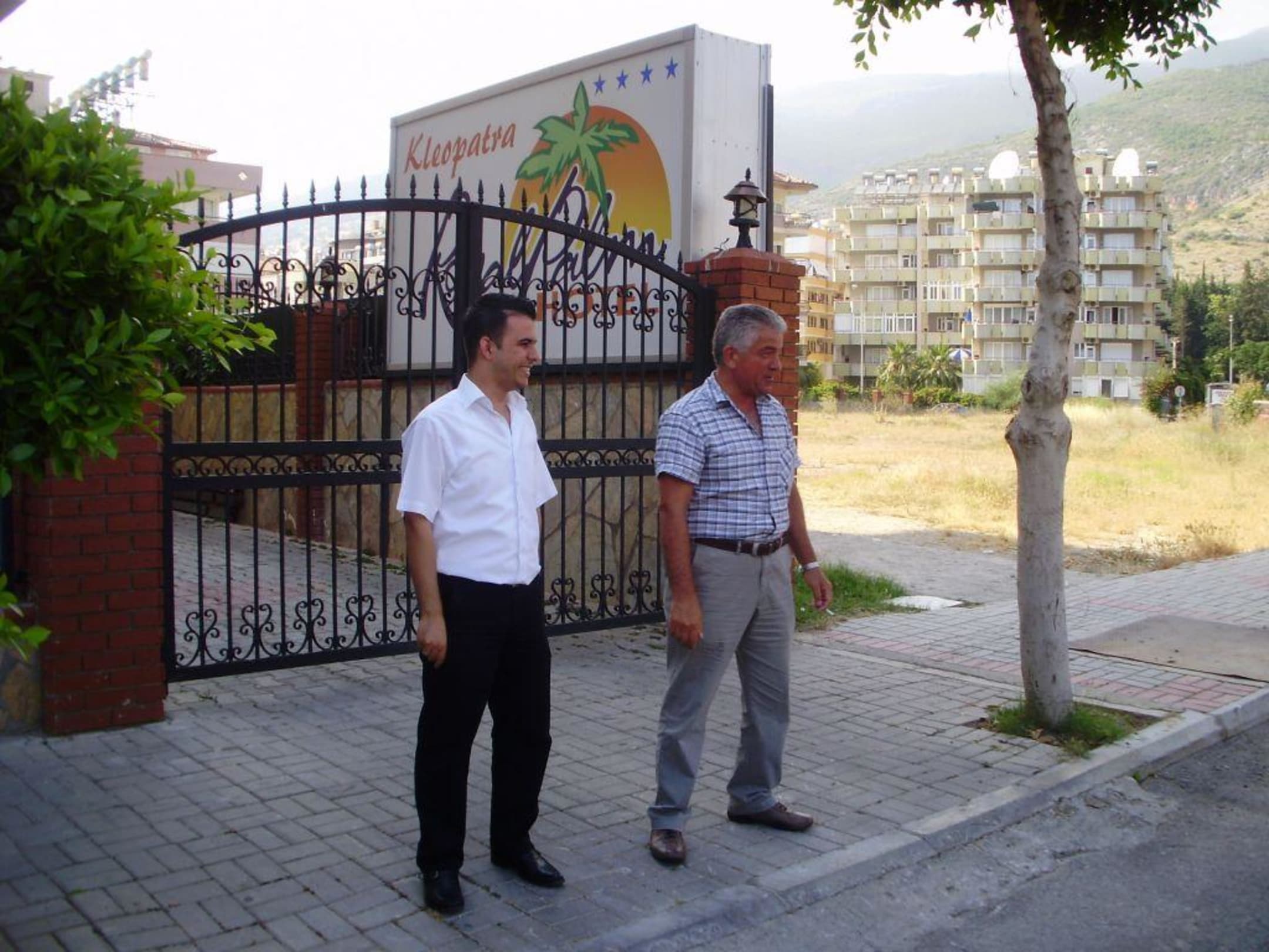 This photo was taken outside Kleopatra royal palm hotel It was the last day of our vacation. It is, as usual it was very good hotel really nice staff and special Hasan who is in the picture, he is the hotel manager