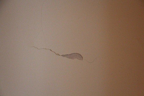 Abgeplatzter Putz über dem Bett