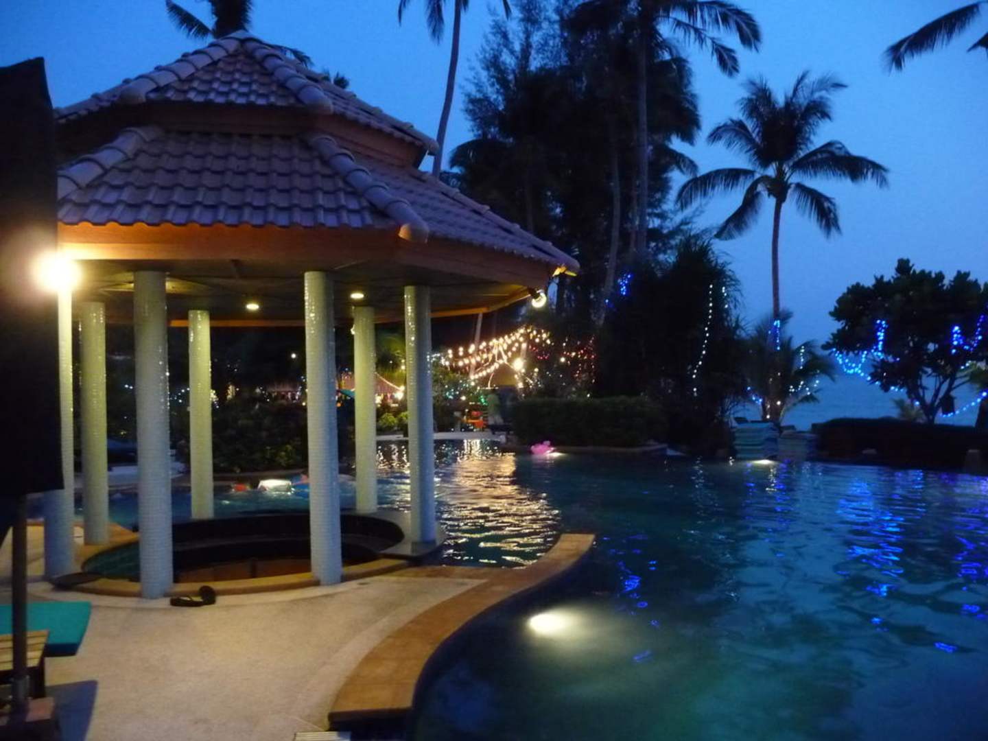 Eine romantische Stimmung zur 'Blauen Stunde' am Pool.