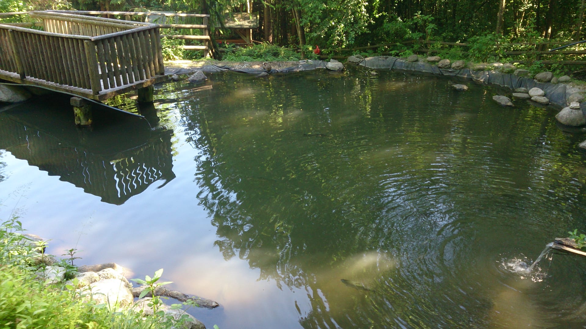 Fischteich des Hotels im Romantikgarten im Wald
