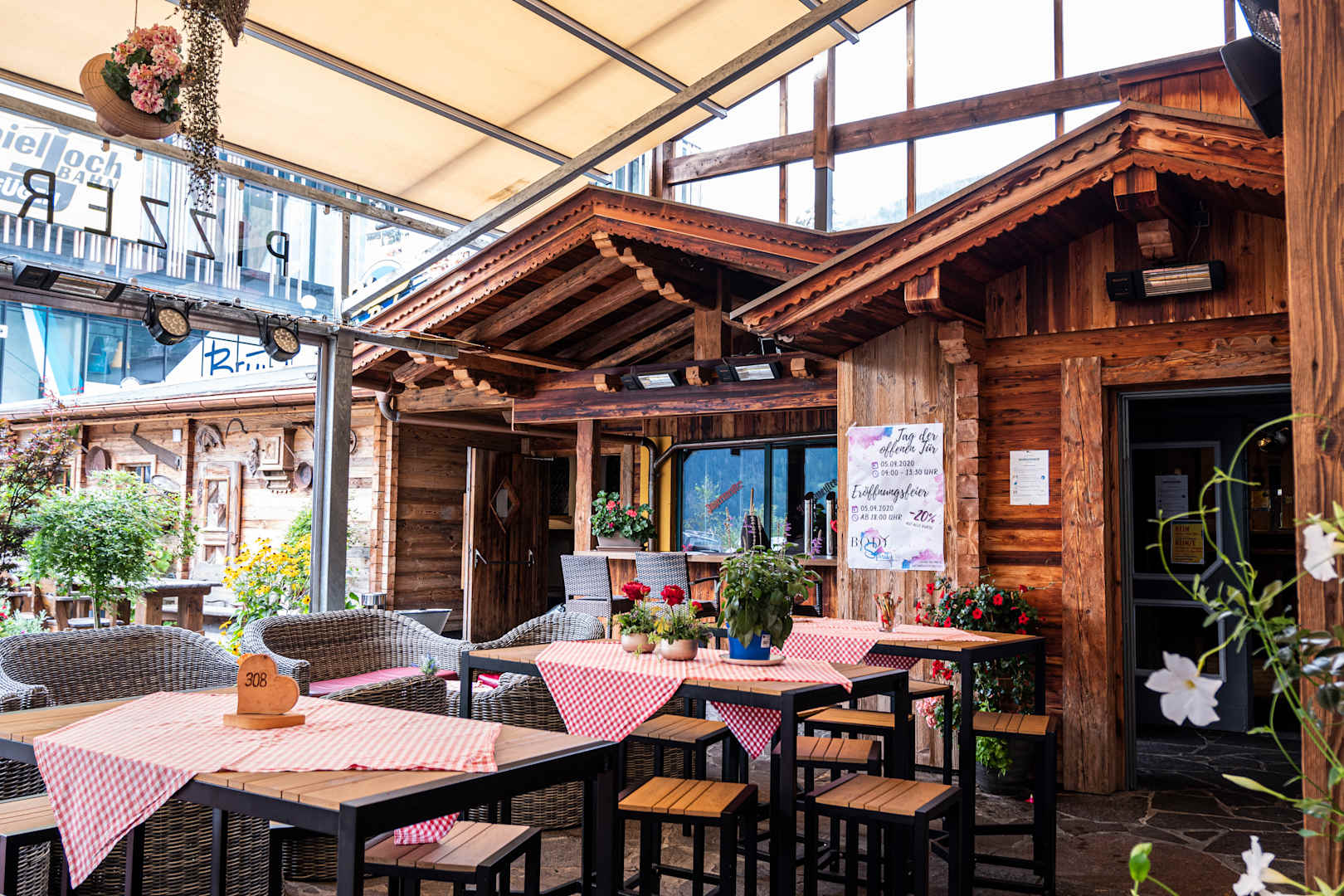 überdacht Terasse mit Pizzeria und Disco
