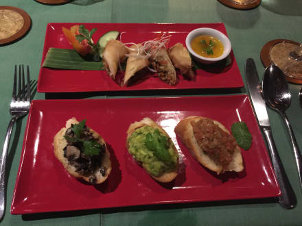 Gemischte Bruschetta und Frühlingsrollen