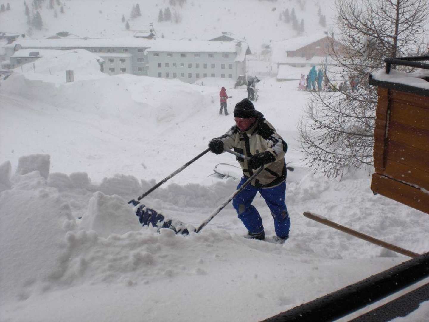 Der Hausmeister beim Schneeräumen