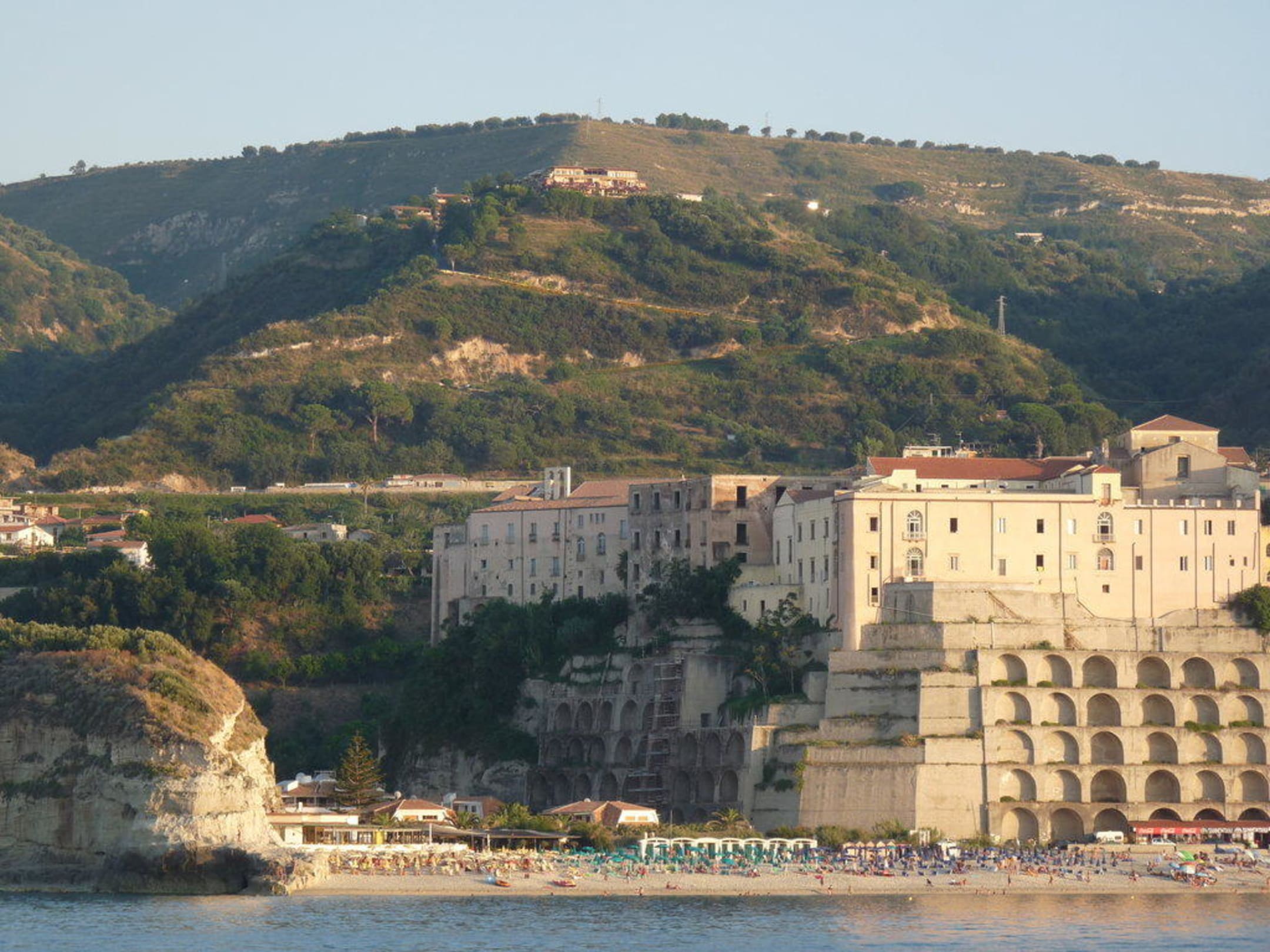 Unten Tropea, oben das Hotel auf dem Hügel