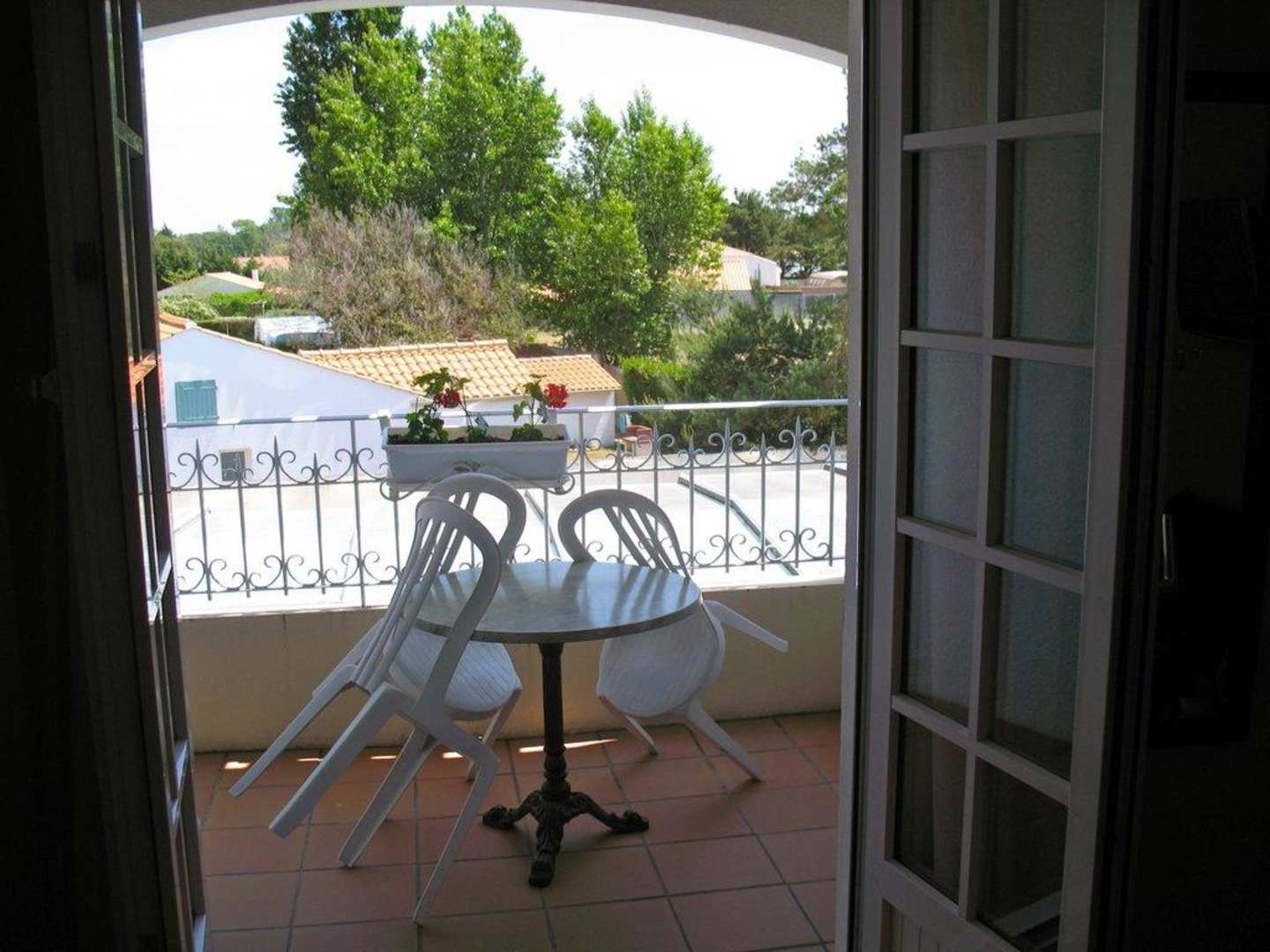 La terrasse privée de la chambreTerrasse avec vue sur la piscine, équipée d'un salon de jardin.