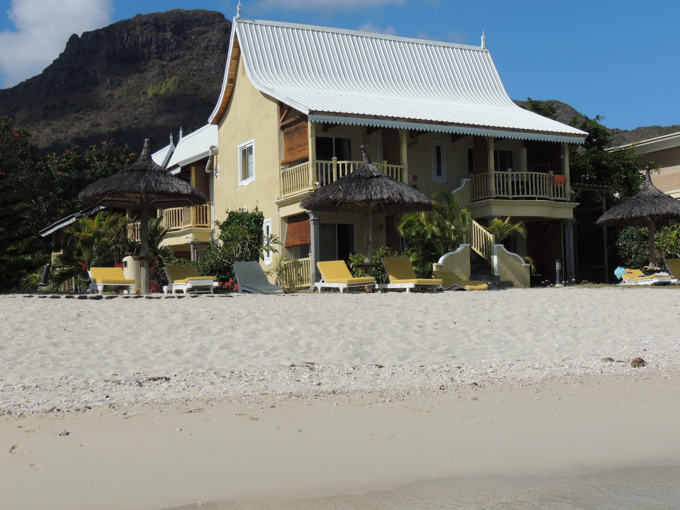 Blick vom Strand zu den Sunsetzimmern