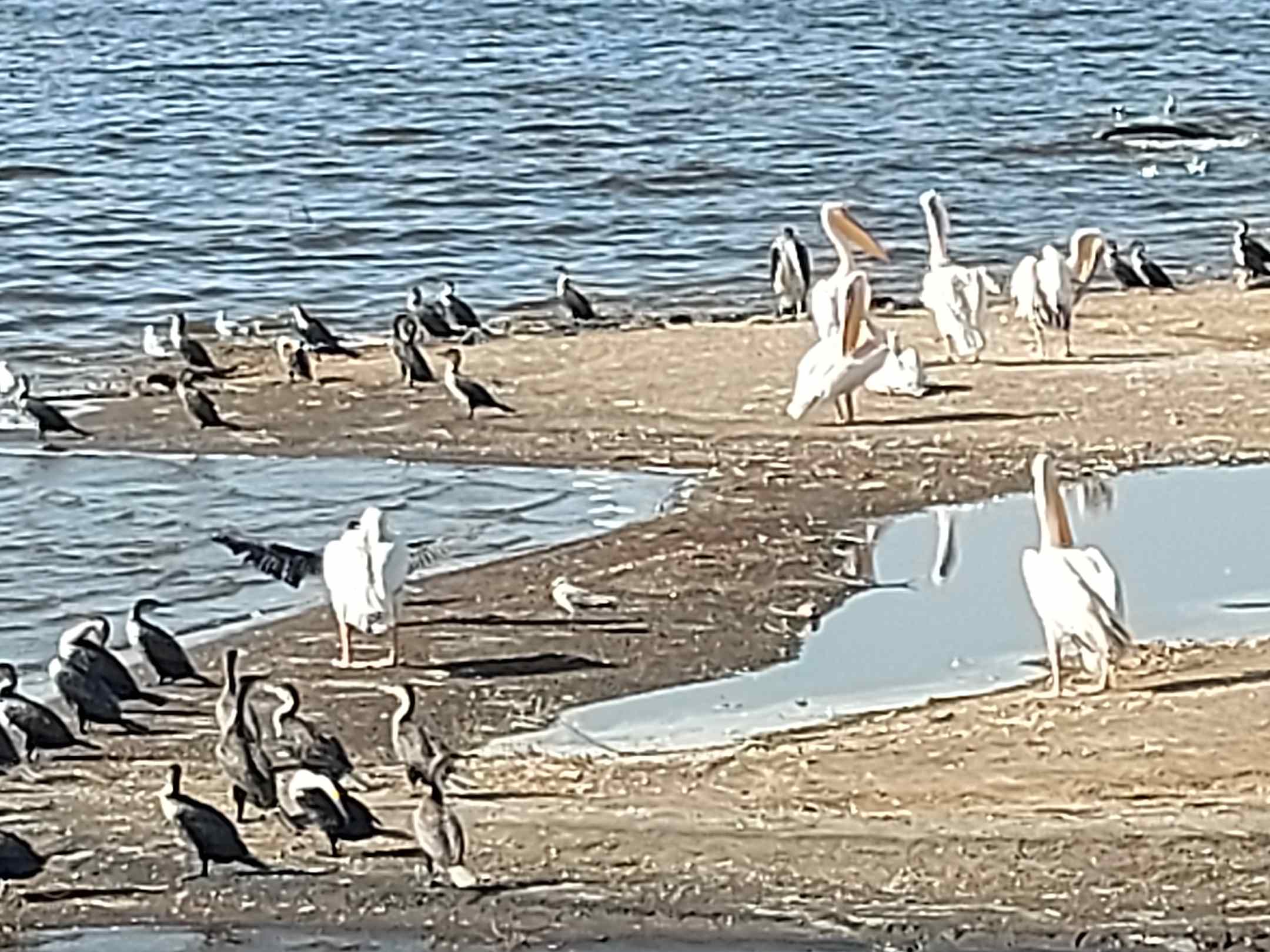 Massenweise Pelikane und sonstige Flugtiere