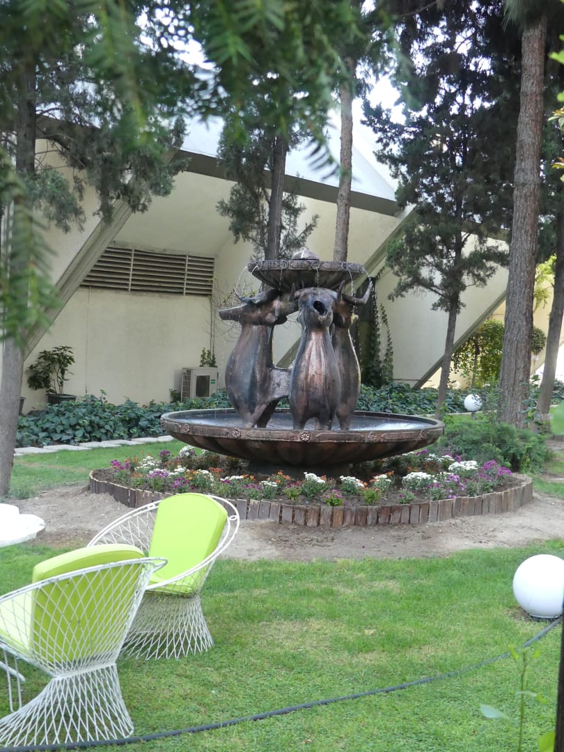 Sitzecke und Brunnen gehören zur Bar.