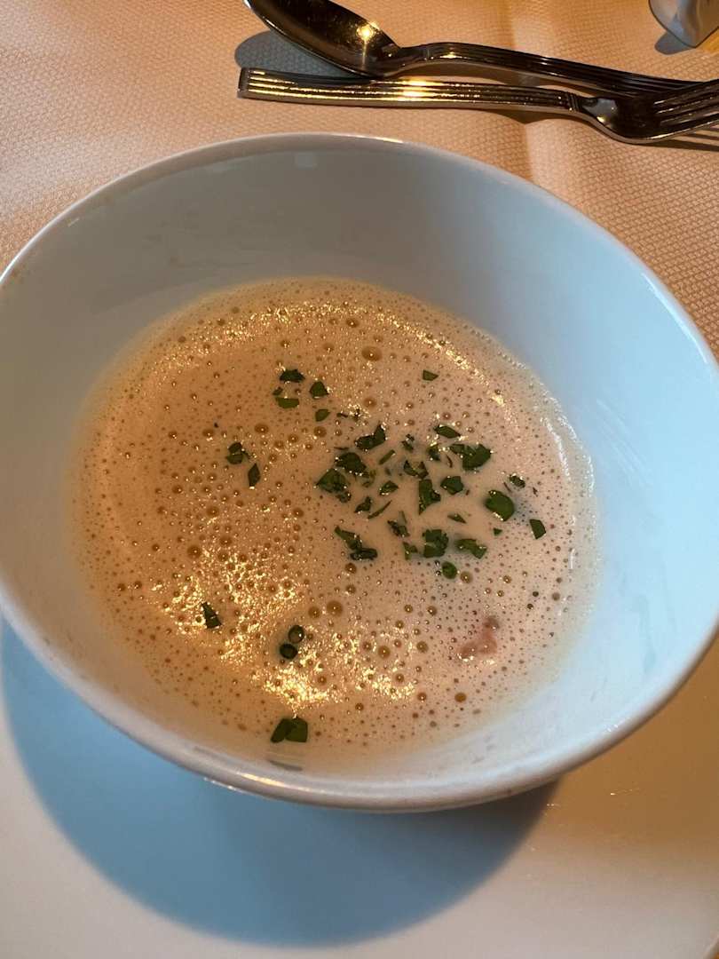 Beim Abendessen gibt es Salat als Buffett , die Suppe wird serviert , sehr lecker 😋
