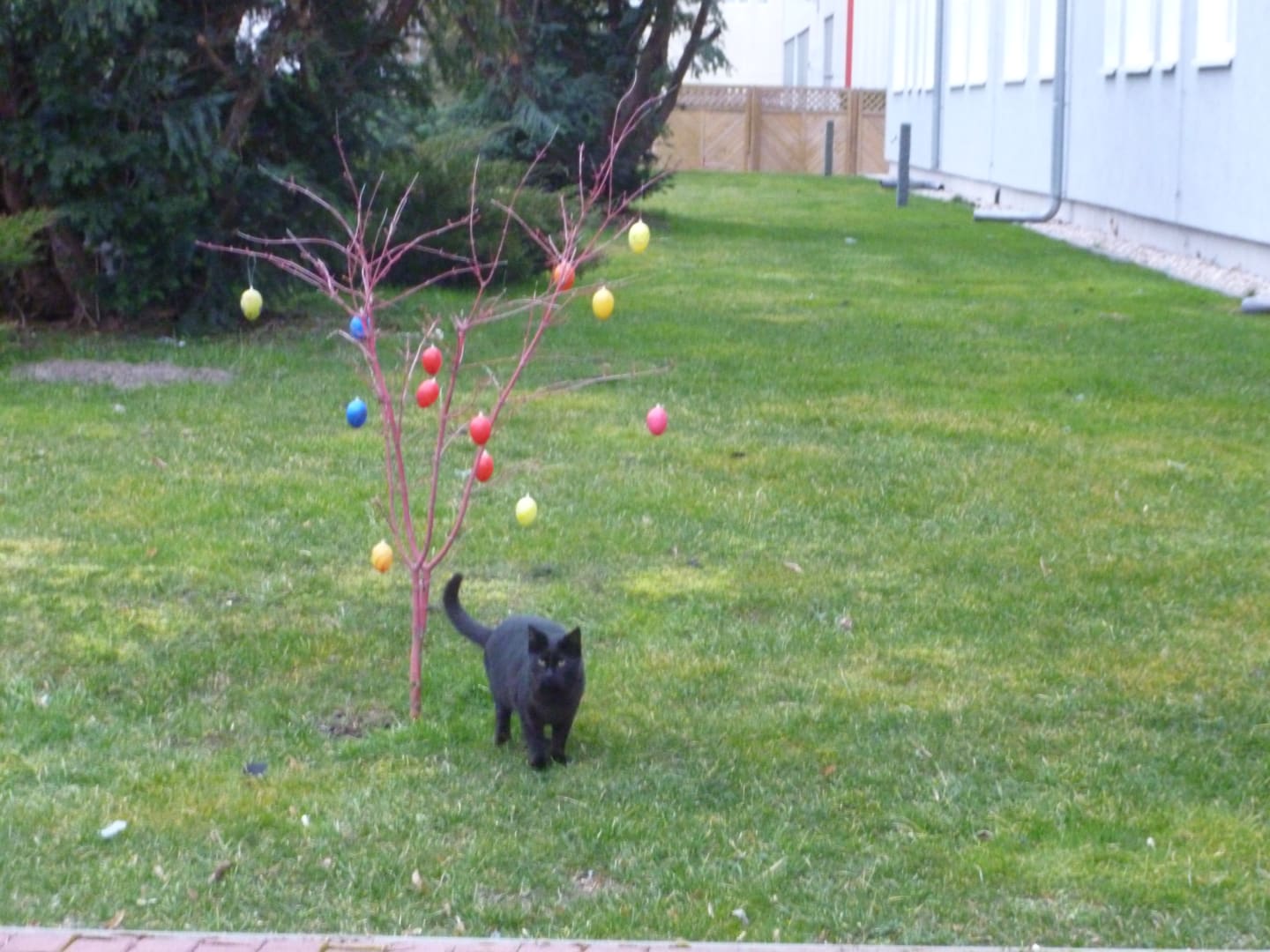 Hauskatze im Garten vor dem Hotel