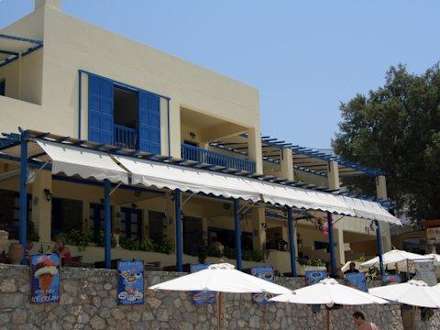 The view from the beach showing part of the hotel, and the restaurant