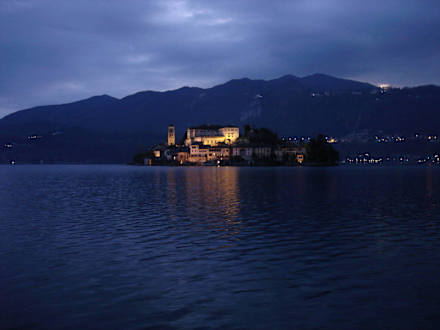 Nächtlicher Blick vom Hotel zur Isola San Giulio