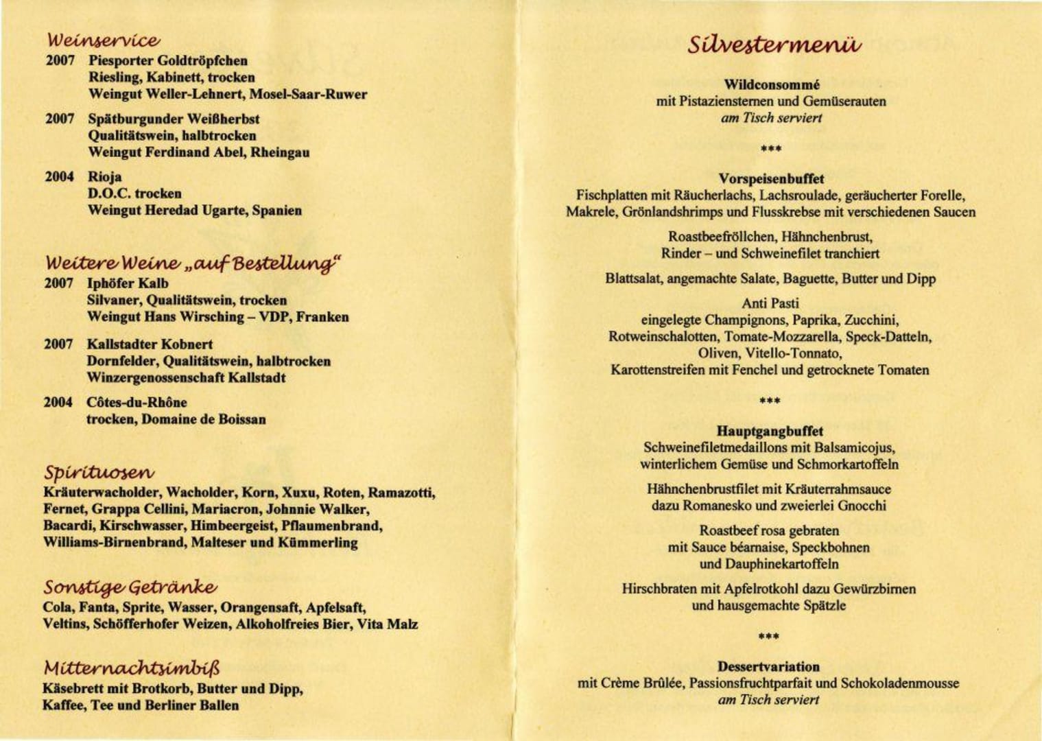 SpeisekarteSpeisekarte des Silvestermenüs 2008