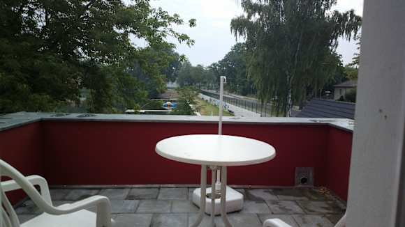 Nr. 3 einzige mit Balkon von 5 Zi.einfache Ausstattung, Bett knarrt, klein 16 m², etwas verdeckter seitlicher Blick zum See
