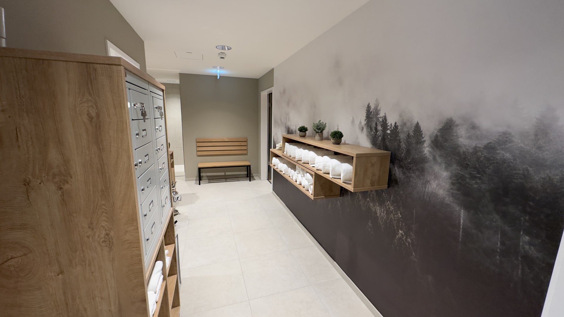 offener Umkleidebereich im Flur zur Sauna