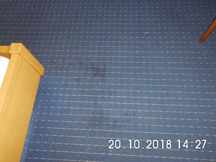 Der fleckige Teppichboden im Zimmer 214.