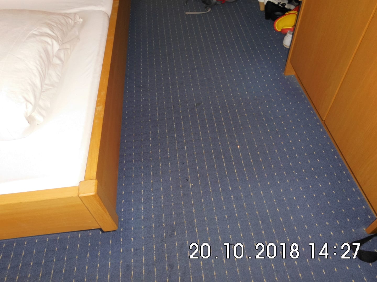 Der fleckige Teppichboden im Zimmer 214.