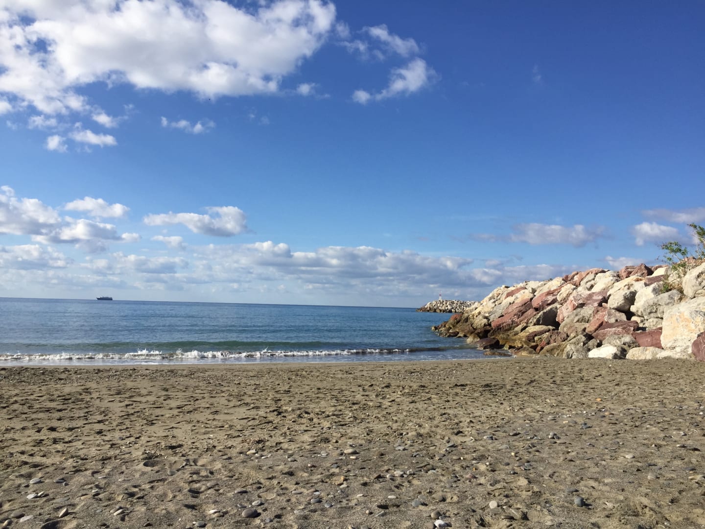 Menschen leerer Strand im November vorm Hotel